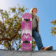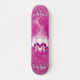 Trio of flaming skulls in hues of pink with a pink patterned background. Text reads GIRLY SKATE - GIRLS RULE!