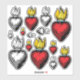 A bold vintage flaming red sacred heart graphic on a selection of durable contour stickers. Each 8" x 8" sheet contains vintage heart stickers in black and white and red, yellow and blue. Available in your choice of white or transparent background colour in a variety of sizes. Add your own text to make these stickers truly one of a kind. Customise your laptop, water bottle, skateboard deck or just about anything at all with these durable vintage sacred heart decals.