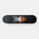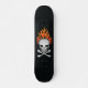 This image features a skull with crossed bones, a classic symbol of danger and mortality. The skull is outlined in white and has a menacing grin with glowing red eyes. Above the skull, flames erupt in vibrant orange and yellow hues, adding to the image's intensity. The background is a solid black, which enhances the contrast and makes the skull and flames stand out.