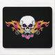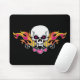 Wicked skull and flames with hues of pink with a trio of pink hearts with silver scrolling details.
