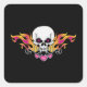 Flaming Skull and Hearts Square Sticker