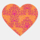 Flaming Tangerine Tango Orange and Pink Damask Heart Sticker