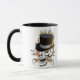 Flaming skull and crossbones with top hat is a fun dressed-up skull design that will get you noticed!