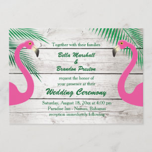 Tropical Palm Tree Flamingo Destination Wedding Invitation