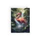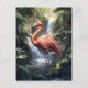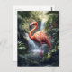A flamingo standing near a jungle waterfall, perfect for tropical-themed crafts, nature lovers.