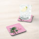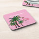 Pink Flamingo and Holiday palm tree tropical theme Christmas tree coasters. Set of 6