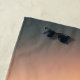 A surreal scene capturing a flamingo and penguin side by side, casting long shadows on a shimmering waterfront at sunset.