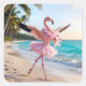 Flamingo Ballerina In a Pink Tutu On the Beach Square Sticker