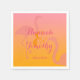 This tropical paper napkin has two very light flamingo silhouettes on a light pink and orange gradient background. There are also customisable text areas for the names of the couple who are getting married and for the date of the event.