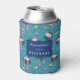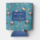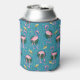 Flamingo Birds 20s Deco Ferns Pattern Blue Custom Can Cooler