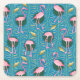 Flamingo Birds 20s Deco Ferns Pattern Blue Gold Square Paper Coaster