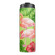 Pattern made of painted with watercolor monstera leaves, hibiscus flowers,flamingo flowers and birds