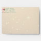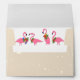 Tropical Christmas envelopes decorated with pink flamingos. Tan sand colour paper has twinkling stars background. Add a return address on the front using the text template. Inside, under the flap four big flamingos stand with holiday wreaths around their necks.
