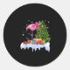 Flamingo Christmas Tree Lights Classic Round Sticker