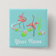 Lively pink flamingos flap their wings and ruffle their feathers against a blue watery background with reeds and water lilies. A stylish design with a retro touch which can be personalised with your own text, images and ideas. An original digital art image created by Quirky Chic.