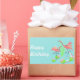 A pair of lively pink flamingos flap their wings and ruffle their feathers against a blue watery background with reeds and water lilies. A stylish design with a retro touch which can be personalised with your own text, images and ideas. An original digital art image created by Quirky Chic.
