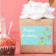 Three lively pink flamingos flap their wings and ruffle their feathers against a blue watery background with reeds and water lilies. A stylish design with a retro touch which can be personalised with your own text, images and ideas. An original digital art image created by Quirky Chic.