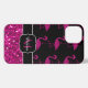 Flamingo faux sparkles pattern black Monogram iPhone Case