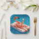 Flamingo Floating With a Cocktail In a Pool Paper Plate