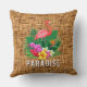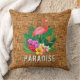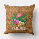 A pink flamingo, tropical flowers and leaves on woven wicker print pattern makes stylish summer theme pillows. MATCHING items in our store.