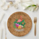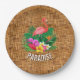 Flamingo Flowers on Wicker Pattern Paper Plate