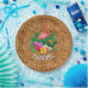 A pink flamingo, tropical flowers and leaves on woven wicker print pattern makes stylish summer paper plates for your outdoor parties, home decor or fun to give as a housewarming gift. MATCHING items in our store.