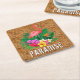 Flamingo Flowers on Wicker Pattern Square Paper Coaster