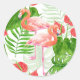 Watercolor pattern design with flamingo flowers and birds, monstera and palm leaves.