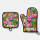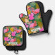 Flamingo Garden Dark Green Oven Mitt & Pot Holder Set