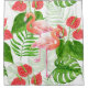 Watercolor pattern design with flamingo flowers and birds, monstera and palm leaves.