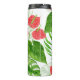 Watercolor pattern design with flamingo flowers and birds, monstera and palm leaves.