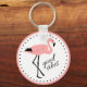 Pink flamingo with black legs and beak, words Good Vibes written in modern hand-written font. Cute and trendy.