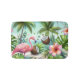 A vibrant and playful tropical design that transports you to a serene paradise. With its lively flamingos gracefully perched amidst lush palm trees, this artwork bursts with colorful blooms, fresh coconuts, and exotic greenery. The calming turquoise backdrop adds to the idyllic atmosphere, creating a refreshing and joyful vibe that's perfect for anyone who loves the tropical lifestyle.