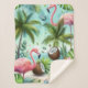 A vibrant and playful tropical design that transports you to a serene paradise. With its lively flamingos gracefully perched amidst lush palm trees, this artwork bursts with colorful blooms, fresh coconuts, and exotic greenery. The calming turquoise backdrop adds to the idyllic atmosphere, creating a refreshing and joyful vibe that's perfect for anyone who loves the tropical lifestyle.