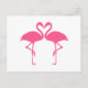 Flamingo heart, two pink flamingos in love postcard
