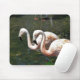 A shot of Pink Flamingo's shot closeup that's on a Mouse Pad with green tree's and water in Salina Kansas.