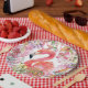 Vintage Spring and Flamingo in Flower Jungle - Summer Paper Plates Pattern. This illustrated Summer foliage Pattern on white design is created with tropical flower elements. The colourful Flamingo in Flower Jungle - Summer Pattern Illustration makes a beautiful design for stylish home.