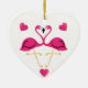 Flamingo Kissing and hearts Ceramic Tree Decoration