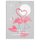 A pair of pink flamingos with necks curved to form a heart shape stand in the sea on a moonlit beach. A stylish, romantic design with a retro touch created in a pink, grey and white colour scheme with a colour-change background. A customisable design for you to personalise with your own text, images and ideas. An original digital art image.