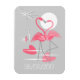 A pair of pink flamingos with necks curved to form a heart shape stand in the sea on a moonlit beach. A stylish, romantic design with a retro touch created in a pink, grey and white colour scheme with a colour-change background. A customisable design for you to personalise with your own text, images and ideas. An original digital art image.