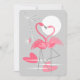 A pair of pink flamingos with necks curved to form a heart shape stand in the sea on a moonlit beach. A stylish, romantic design with a retro touch created in a pink, grey and white colour scheme with a colour-change background. A customisable design for you to personalise with your own text, images and ideas. An original digital art image.