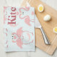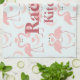 This "Flamingo Love" kitchen towel displays pairs of pink flamingos on a soft blue background. Their heads are bowed to resemble a heart. There are pink feathers adorning the design. Customise your name today!