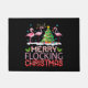 Flamingo Noel Hats Dancing On Snow Merry Flocking Doormat