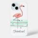 Mid-century inspired design with a retro touch featuring a pink flamingo standing in aqua water against a white background. A customisable design for you to personalise with your own text, images and ideas. An original digital art image created by Jess Perry at QuirkyChic Retro