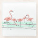 Mid-century inspired design with a retro touch featuring a group of pink flamingos standing in aqua water against a white background. A customisable design for you to personalise with your own text, images and ideas. An original digital art image created by Jess Perry at QuirkyChic Retro.
