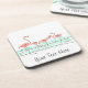 Mid-century inspired design with a retro touch featuring a group of pink flamingos standing in aqua water against a white background. A customisable design for you to personalise with your own text, images and ideas. An original digital art image created by Jess Perry at QuirkyChic Retro.