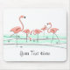 Mid-century inspired design with a retro touch featuring a group of pink flamingos standing in aqua water against a white background. A customisable design for you to personalise with your own text, images and ideas. An original digital art image created by Jess Perry at QuirkyChic Retro.