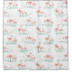 Mid-century inspired design with a retro touch featuring groups of pink flamingos standing in aqua water against a white background. A customisable design for you to personalise with your own text, images and ideas. An original digital art image created by Jess Perry at QuirkyChic Retro.
