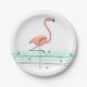Mid-century inspired design with a retro touch featuring a pink flamingo standing in aqua water against a white background. A customisable design for you to personalise with your own text, images and ideas. An original digital art image created by Jess Perry at QuirkyChic Retro.