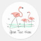 Mid-century inspired design with a retro touch featuring a group of pink flamingos standing in aqua water against a white background. A customisable design for you to personalise with your own text, images and ideas. An original digital art image created by Jess Perry at QuirkyChic Retro.